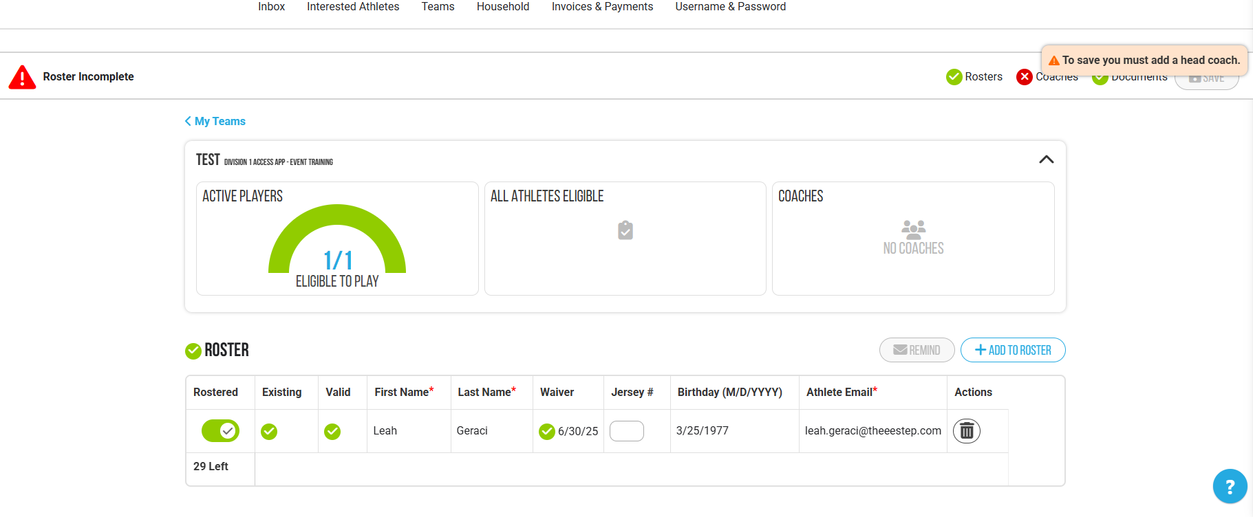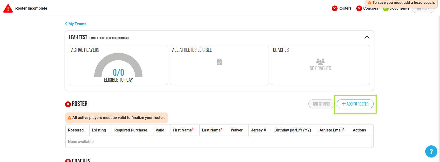 Only players who have completed their waivers will be listed on the final roster submission and will be allowed to participate in the event.